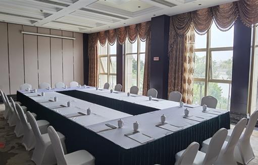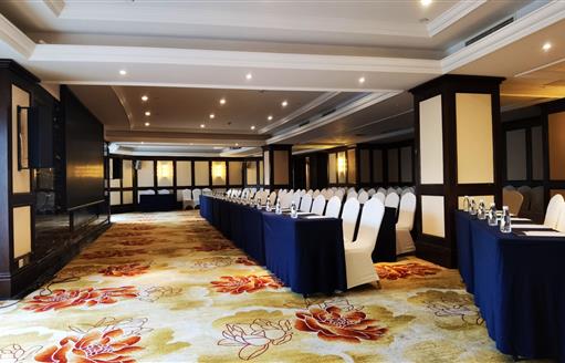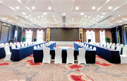 酒店位于綿陽市經(jīng)開區(qū)三江交匯口下游,5.07平方公里的水面面積堪比西湖。酒店四周環(huán)水,視野開闊,風(fēng)景優(yōu)美,與富樂山、筆架山和南山遙相對望,距離南郊機(jī)場6公里,距離火車站8公里,交通便利。酒店占地面積 57畝,總建筑面積4.2萬平方米,每個(gè)細(xì)節(jié)之處都融入了浪漫的法式風(fēng)情。從外觀瞭望,半弧形的建筑設(shè)計(jì)都市時(shí)尚感十足,在園林設(shè)計(jì)方面,更是采用了法國古典藝術(shù)風(fēng)格,突出軸線、強(qiáng)調(diào)對稱、注重比例,濃郁的法式浪漫風(fēng)情彌漫而來。酒店擁有各類客房235間以及風(fēng)格各異的宴會廳、多功能廳與會議室、以及恒溫游泳池、婚禮禮拜堂等配套設(shè)施,具有承接高檔宴會、酒會、展會及Party等大型活動的能力。